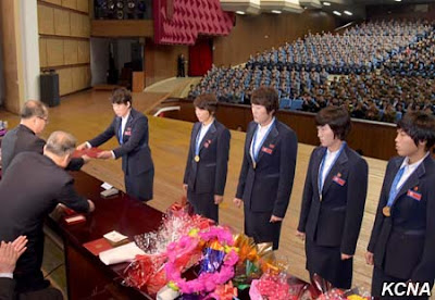Las jugadoras de la selección norcoreana, que ganaron el torneo de manera invicta, fueron felicitadas por autoridades de la República y del Partido del Trabajo.